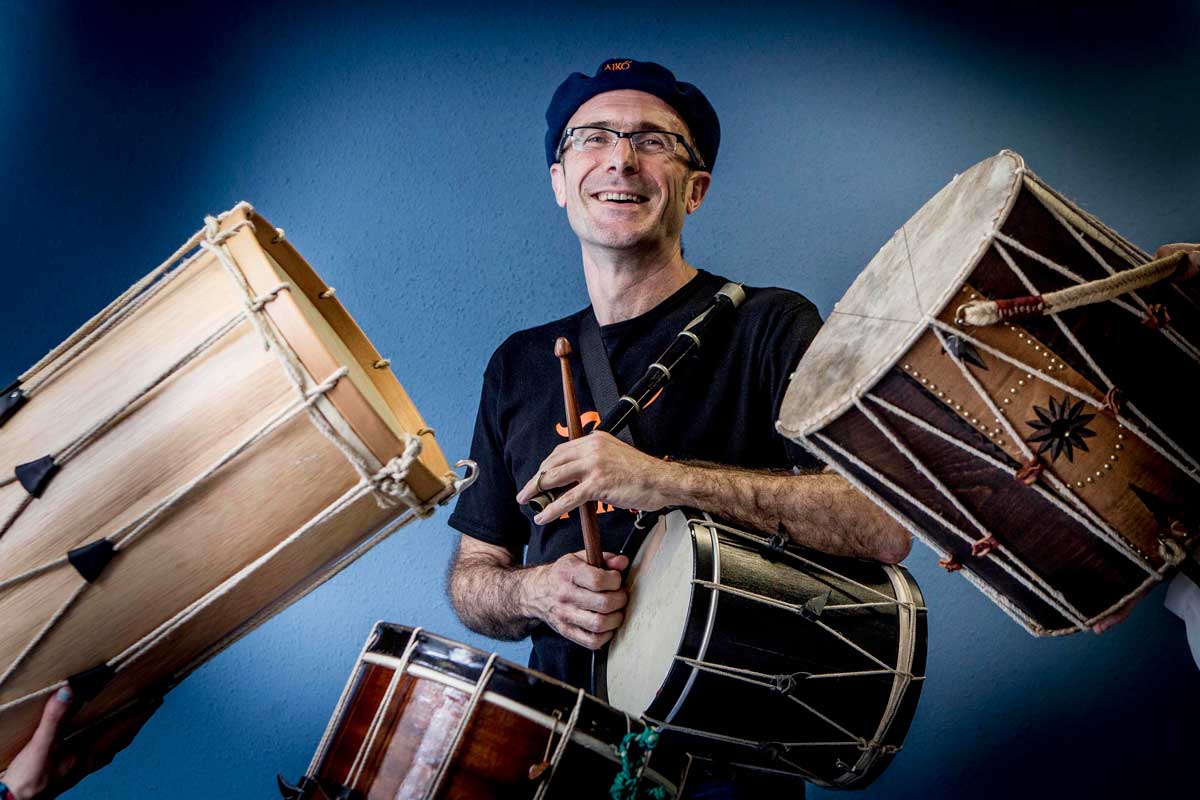 Sabin Bikandi (Galdakao, 1965) Filosofian eta Etnomusikologian doktorea da eta gaur egun Aiko taldeko kidea izateaz gain, Bilboko Udaleko danbolinteroa ere bada. Hainbat talde eta erakundetan aritu da 1980tik irakasle edota jotzaile moduan. Hala nola, Musikenen tradiziozko dantza irakasle aritu da eta Txistulari aldizkariko zuzendaria izan zen (1992-1995). Konpositore gisa, txistu eta tradiziozko musikaren inguruan hainbat musika-lan idatzi eta moldatu ditu. 2015ean ikuskizun baterako musika konposiziorik onenaren Max saria irabazi zuen. Agenda gainezka dauka Sabinek, baina bere bizitzaren ardatzak diren musika eta dantzari buruz hitz egiteko tartetxoa topatu du atsegin handiz. Bere jarduera profesionalaren errepasoa egin digu eta AIKO taldearen ibilbideaz eta helburuez mintzatu zaigu. Ahoan ilerik ez dauka eta titularrez beteriko elkarrizketa eskaini digu.