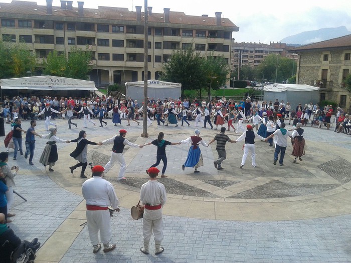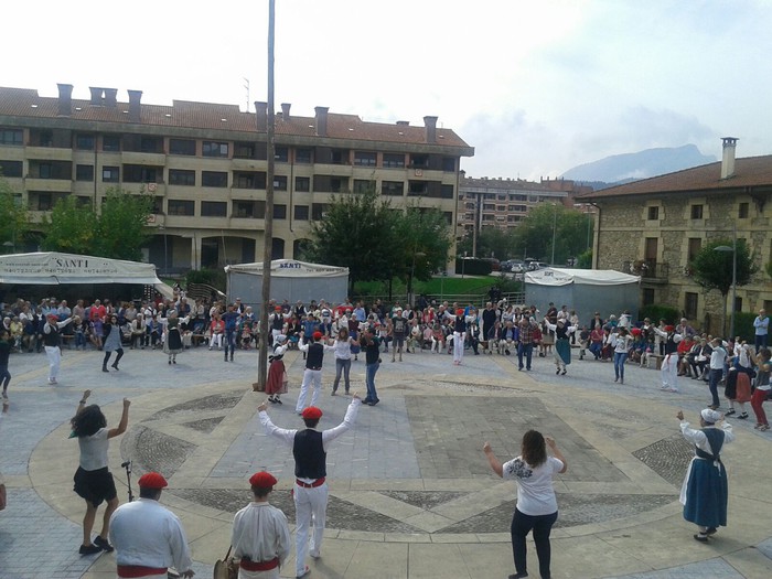 Orain arte, San Migel eguneko eguerdiko dantza saioa mutilen esku egon izan da. Atzo, lehenengo aldiz, batera irten ziren neskak eta mutilak plazara: mutilek aurreskua dantzatu zuten, eta neskek atzeskua. Parekidetasuna lantzen dabiltza azken urteotan Mikel Deuna dantza taldeko kideek, eta horrela berreskuratu zuten baita, duela urte batzuk, nesken sokadantza.