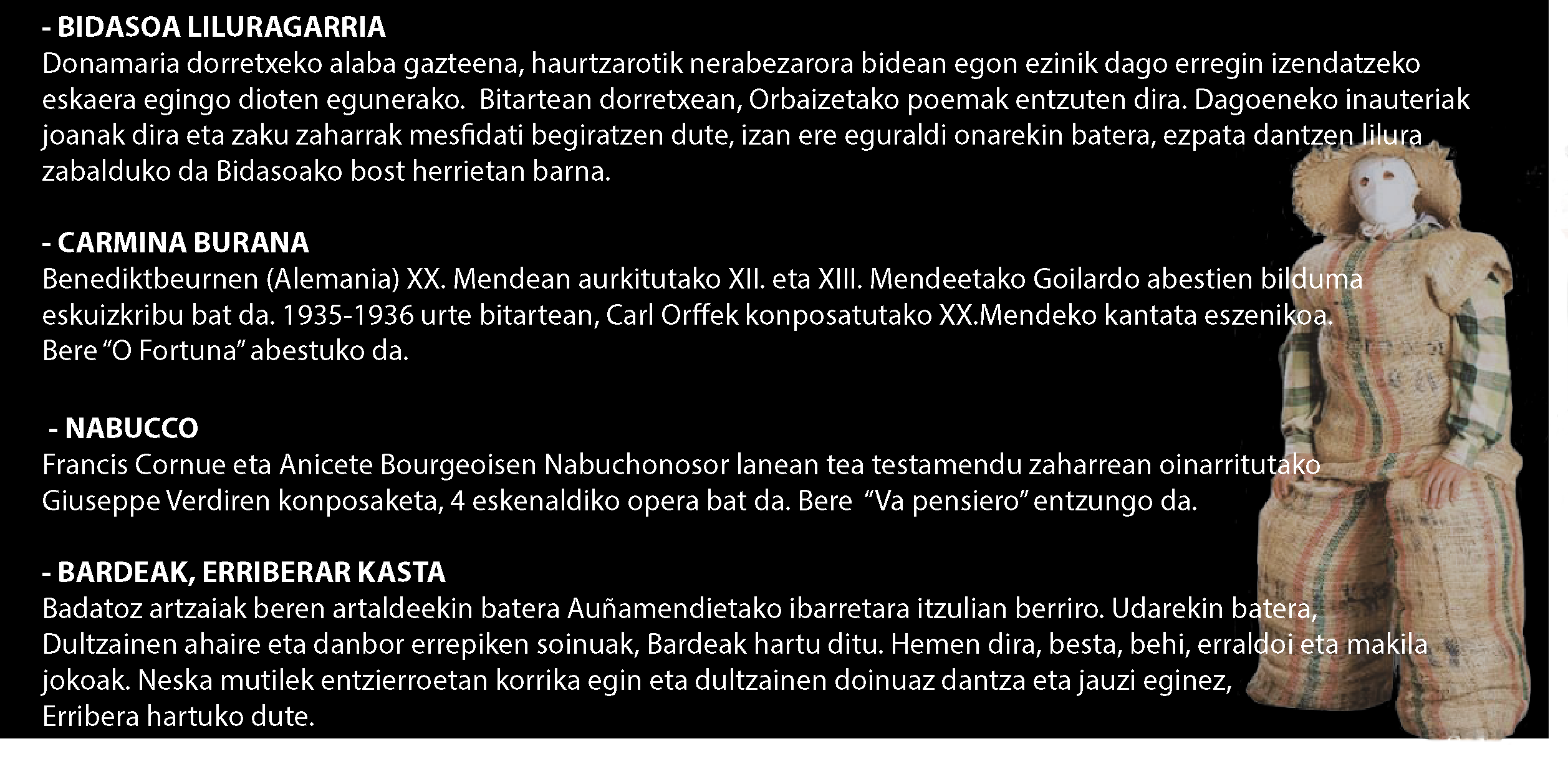 Larunbat honetan eskeiniko dute Julian Barrenetxea Abesbatzak, Azpeitiko Musika Bandak eta Sahatsa Dantza Taldeak elkar lanean prestatu duten ikuskizuna.