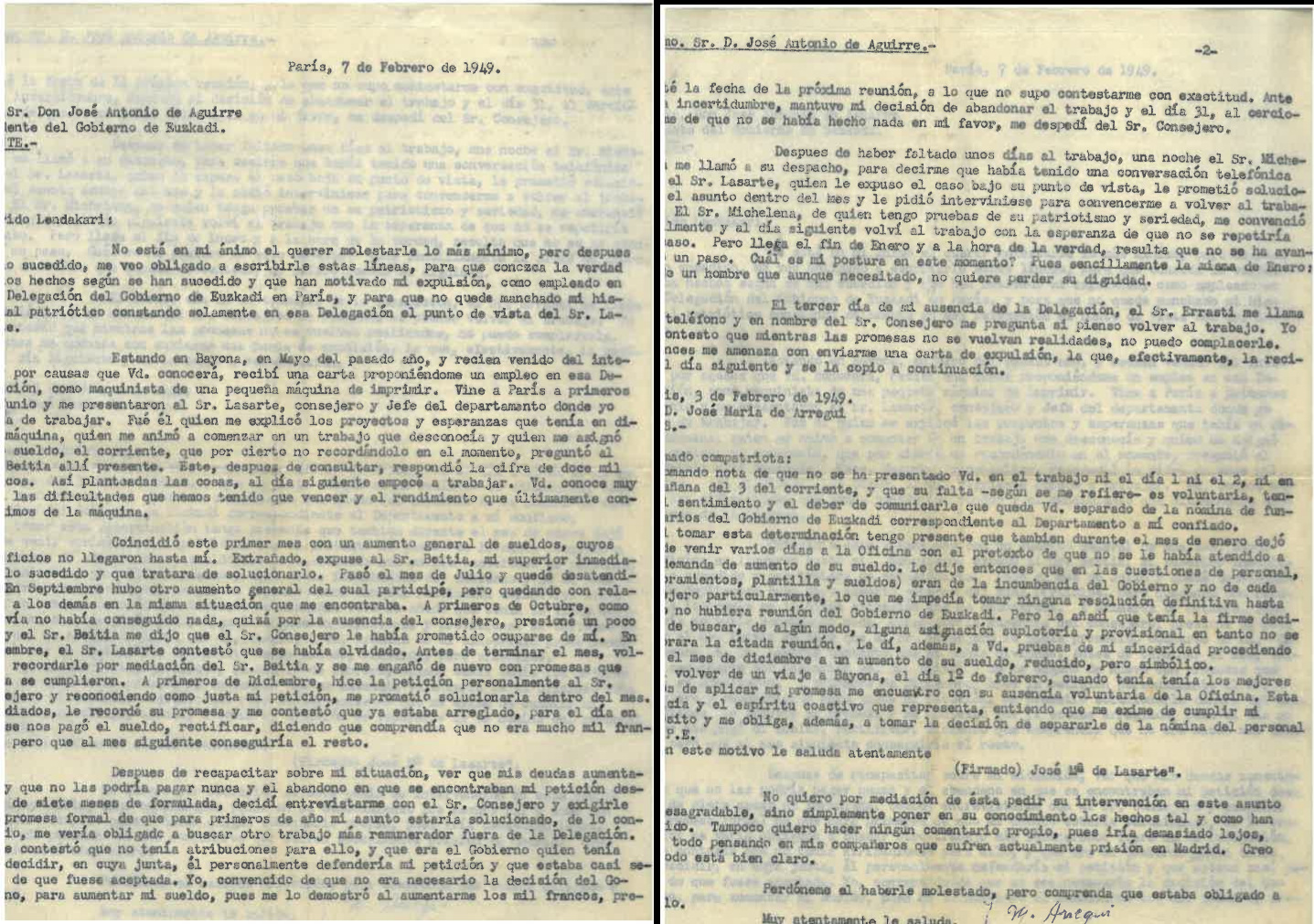 Baina egoera ekonomiko larrian ibili zen, Jaurlaritzak gutxi ordaintzen ziolako eta ez beti fundamentuz. Horregatik hainbat aldiz arazoak izan zituen, Parisen bizitzea garestia izan eta zorrak hazten baitzitzaizkion. Agirre lehendakariari ere idatzi behar izan zion, kexua agertzen egoera hura zela eta. Azkenean, 1966.eko urrian, Jaurlaritzako lana utzi eta bestelakoetan jardun zuen bizitzeko lain emango zion soldata lortzeko.
