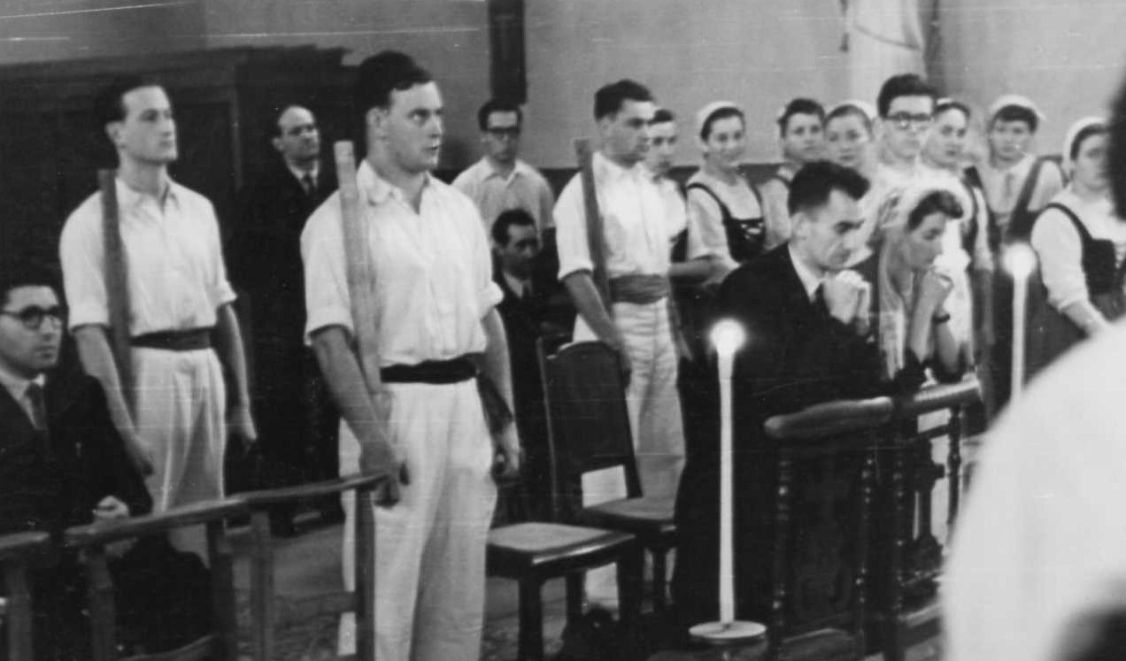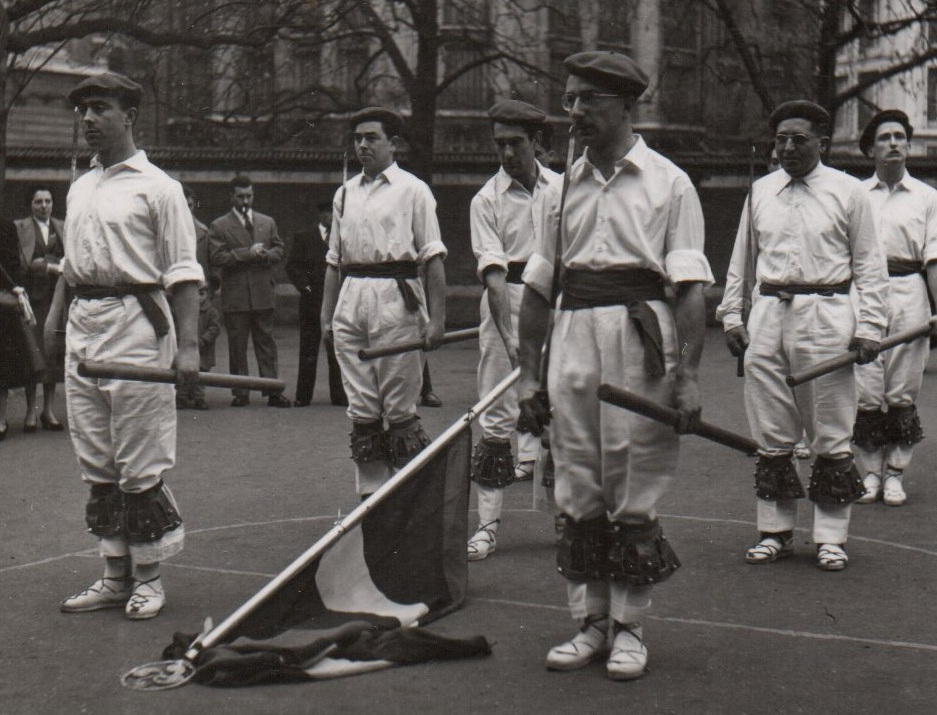 1950. Parisko euskaldunen festa batean, Jose Mari bertsotan.