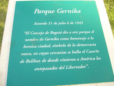 Irailaren 27a. Gogo haundiz eta ilusioz espero genuen eguna, Bogotako Euskal Etxearen inguruan egin behar genuen emanaldia. Inguruan diogu zeren Euskal Etxea Gernika izena berreskuratu berri duen parkera irekitzen da eta ingurua ikusita gure emanaldia parke honetara zabaltzea pentsatu genuen, Euskal Etxea eta bere inguru guztia gure doinu eta dantzekin hartuz eta zergatik ez, gure kulturarekin bateginez. Horrela, arratsaldeko 18:00 puntuan hasi genuen gure ibilbidea parkean zehar zenbait dantza eskainiz. Hasiera batean Euskal etxeko ordezkari eta lagunak bazeuden ere, ekitaldia aurrera zihoan heinean pertsona ugari hurbildu ziren bertara eta han geunden guztion pozerako izugarrizko jakin mina sortu zen Euskalerriaren, Gernika parkearen, Euskal Etxearen, eta gure dantzen inguruan. Kanpoko ekitaldia amaitzeko Euskal Etxearen sarreran arkua egin genien bertan lanean aritu eta proiektua gauzatzea lortu dutenei. Euskal etxearen barruan berriz, zuzendaritza taldeari eta bertan zeuden guztiei dantzari batek Agurra dantzatu zien. Ekitaldi formala bukatzeko opari trukaketa bat egin genuen eta alde bateko eta besteko esker oneko hitzak entzun ondoren, mokadutxo bat jateari ekin genion, eta nola ez, kantatzeari eta zenbait dantza dantzatzeari. Benetan une polita eta ahaztezina han bildu ziren euskal jatorria zuten guztientzat, beraien lagunentzako eta guretzako ere bai.