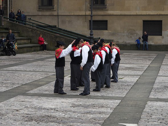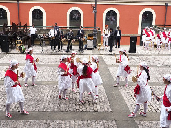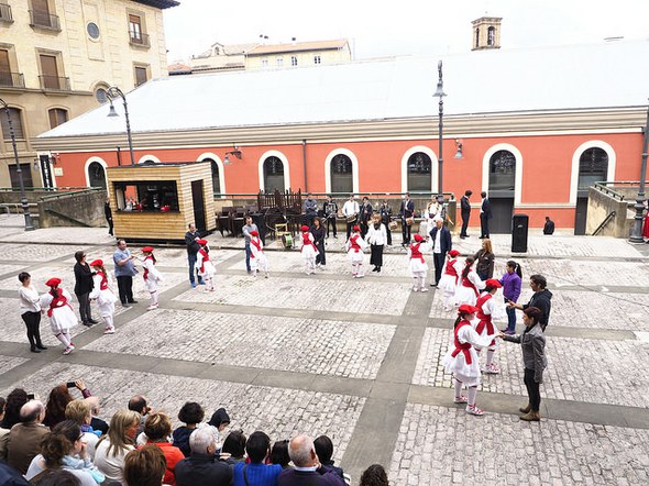 Gure txikien ohiko errepertorioaz gain, sorpresaren bat ere izan genuen emanaldian. Hirugarren mailako taldeak soka-dantza berezi bat landu du ikasturtean zehar. Dantzari txikiendako soka-dantza bat, noizbait Iruñeko jaien egutegiko txokoren batean txertatzeko xedearekin jaio dena. Han atera ziren dotore-dotore, sokan, zubia han, zortzikoa hemen... dantzari bakoitzak gonbidatu bana hautatu zuen -ama, aita, anai-arreba...- eta zerbitzariek sokara gonbidatu zituzten halako batean. Belauntxingoa dantzatu eta ondotik, fandangoa eta arin-arina egin zuten guztiek elkarrekin.