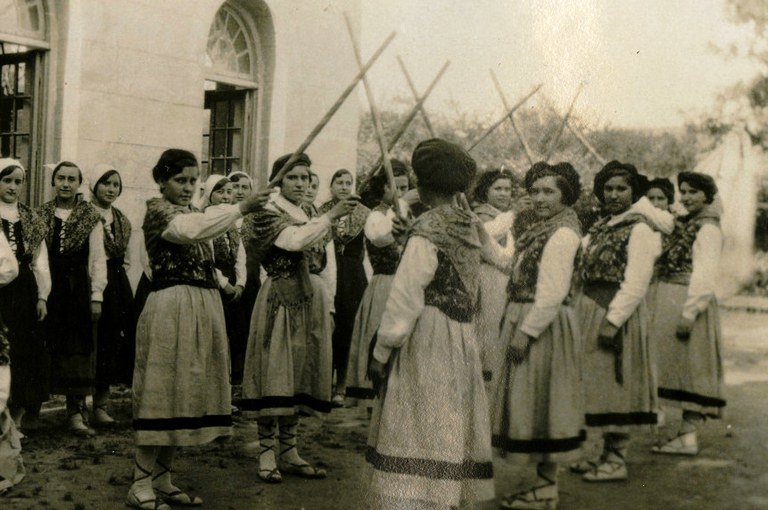 Emakumeak dantzan ageri dira Durangoko Museoan bildutako hainbat argazkitan. Gorularien dantza eta estanpa, makila-dantza, aurresku eta zinta-dantza ageri dira argazkiotan. Argazkion data zehazteke, Espainiako Gerra Zibilaren ondoren, Frankoren diktadurapeko lehen urteetan, Seccion Femenina zein Mariaren Alabak elkarteen baitan antolatu izan ziren nesken taldeen tankera dute irudiek.