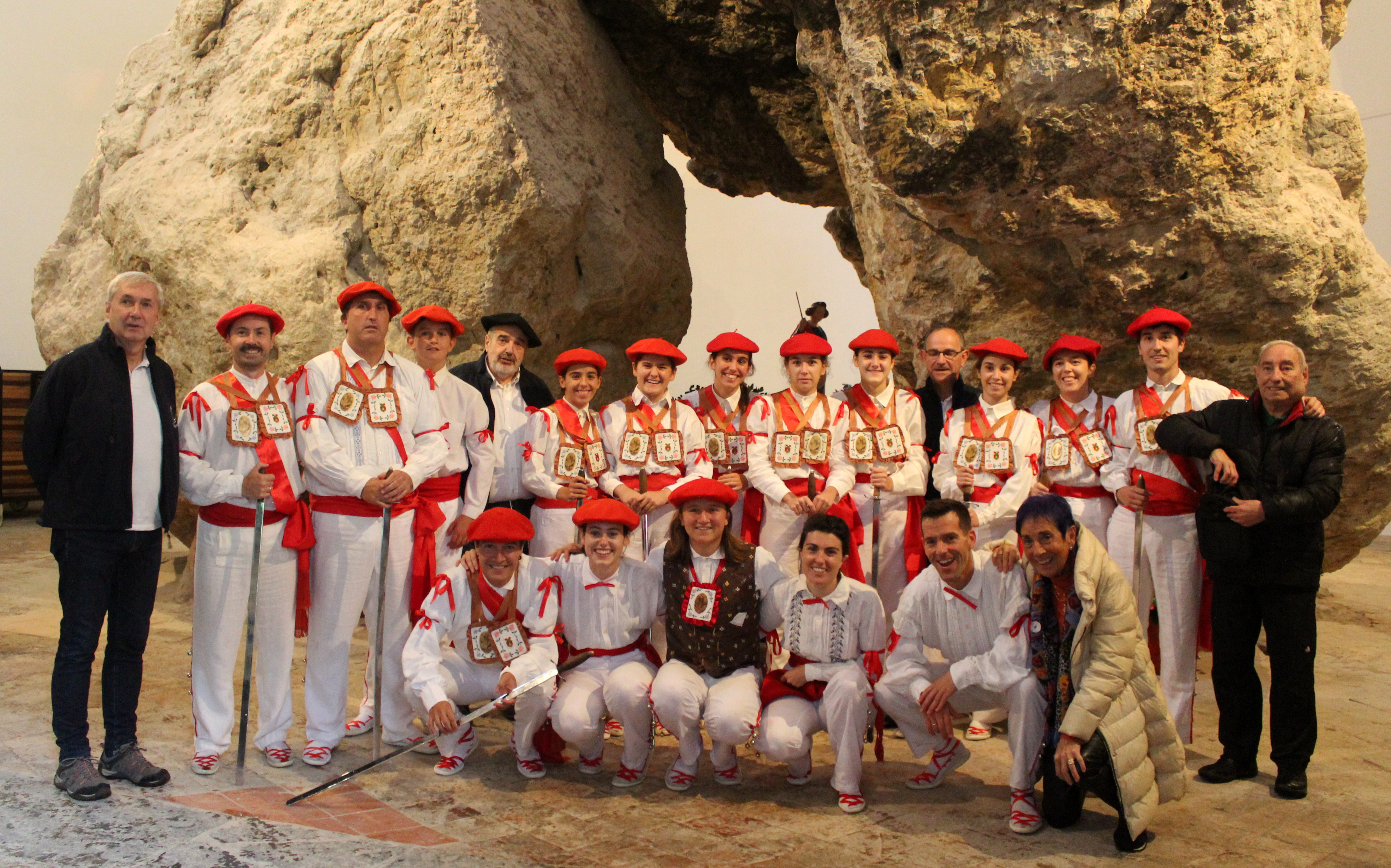 Dantzariak, ezkerretik hasita, goian: Iñaki Azpiazu, Alex Larrinaga, Eritz Larrinaga, Irati Valencia, Mirari Espilla, Ziara Larrinaga, Malen Perez, Oihane Urbieta, Leire Pagaegi, Ainhoa Basterretxea, Oier Onaindia. Markututa: Andoni Elu, Alaine Urrutia (ezpata-txiki), Aaron Arriola (maisu zaharra), Iraide Antxia (ezpata-txiki), Iñaki Kareaga (ezpata-txiki), Argazkian ez daudenak: Igor Ibarzabal (ezpata-txiki), Aitor Urriolabeitia. Txistulariak: Gorka Lauzirika, Koldo San Sebastian, Javi Zabala. Eskuinean: Felipe Amutxastegi eta Pili Garitaonaindia.
