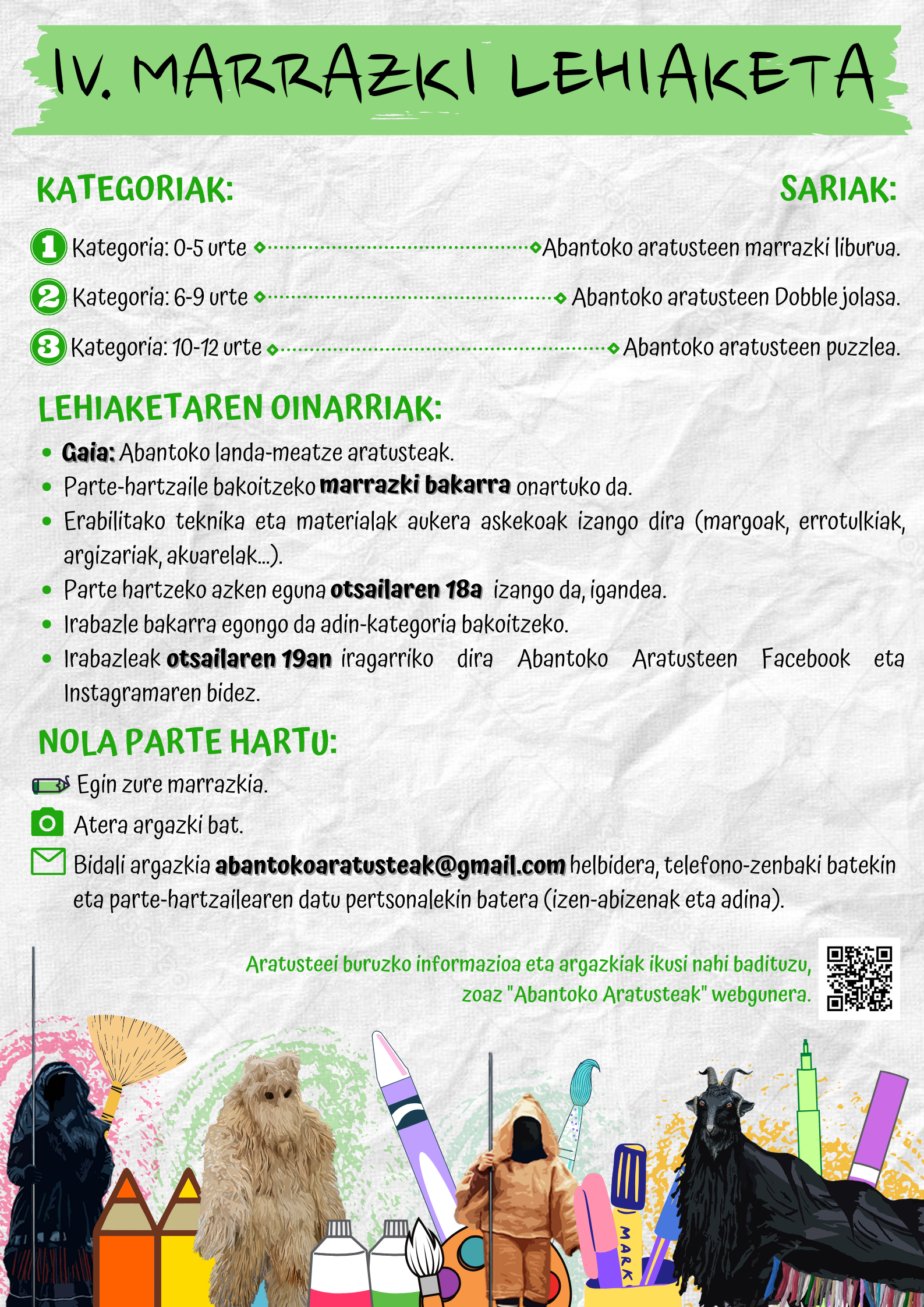 Eta azkenik, Abantoko Aratustetako marrazki lehiaketan parte hartu dezakezue Otsailaren 18ra arte, behar duzuen informazio osoa hemen duzue, zorte on partaide guztiei!